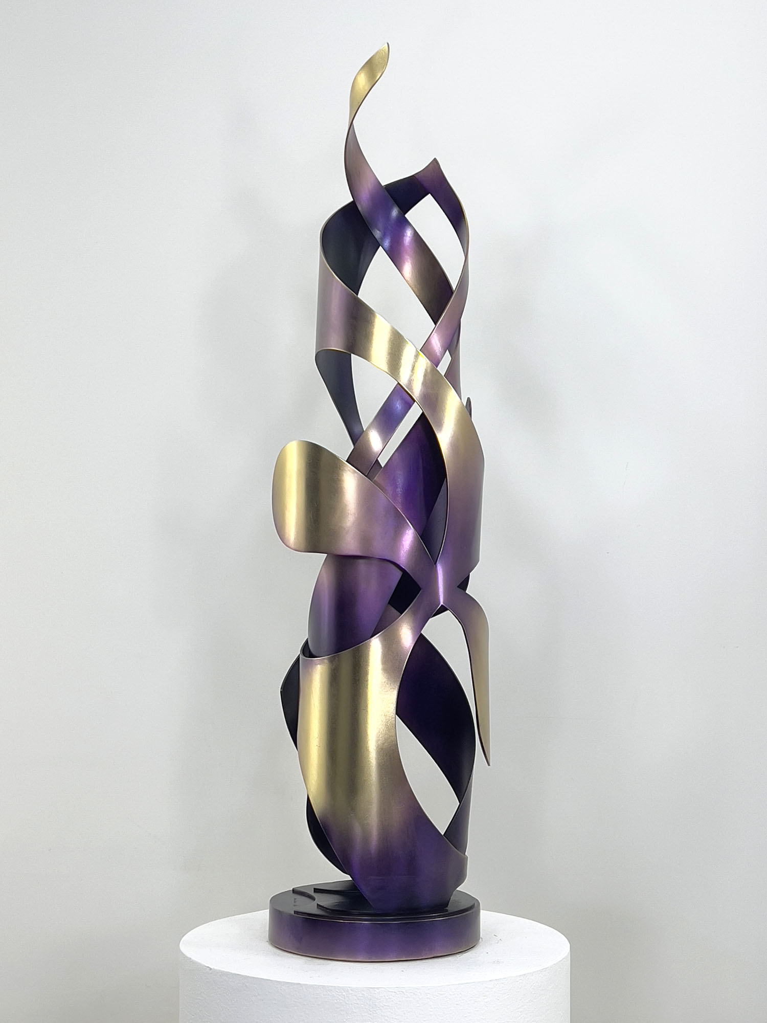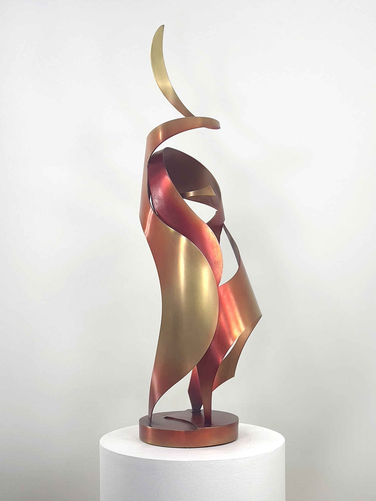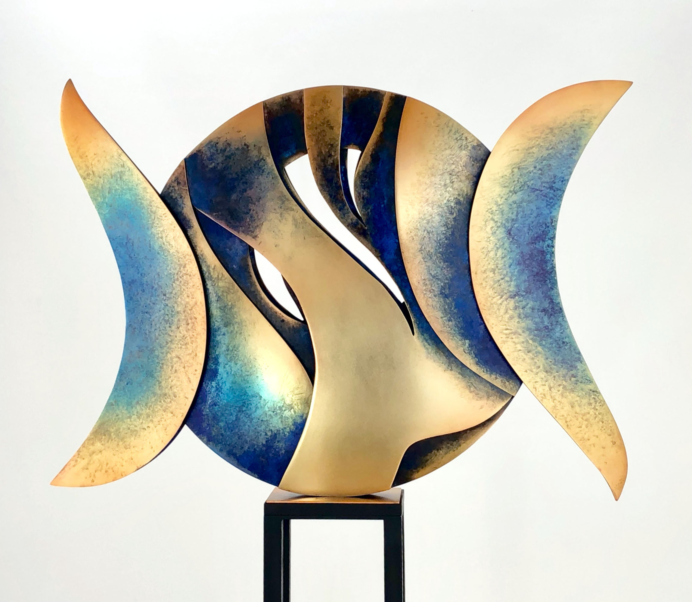 My work is inspired by the harmony and intelligence inherent in nature. The intricate structure of a leaf, the resilience of grass bending in the wind, or moonlight shimmering across water reveal the quiet logic and balance within nature’s fundamental forms. I invite you to visit my studio and experience the sculptures in person. You’ll see how each piece evolves from raw metal into a living form of light, reflection, and space. In place of a more common method of casting I am drawn to fabrication—physically shaping and transforming a flat sheet of metal into refined, curvilinear forms. Alongside sculpture, my paintings and relief prints explore the dialogue between two and three dimensions
